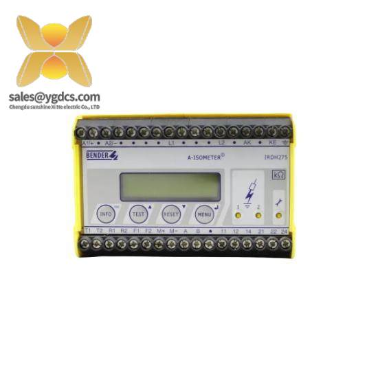 The BENDER IRDH275B-425 Insulation Monitoring Device is engineered for critical electrical system integrity monitoring, safeguarding against potential failures due to compromised insulation.